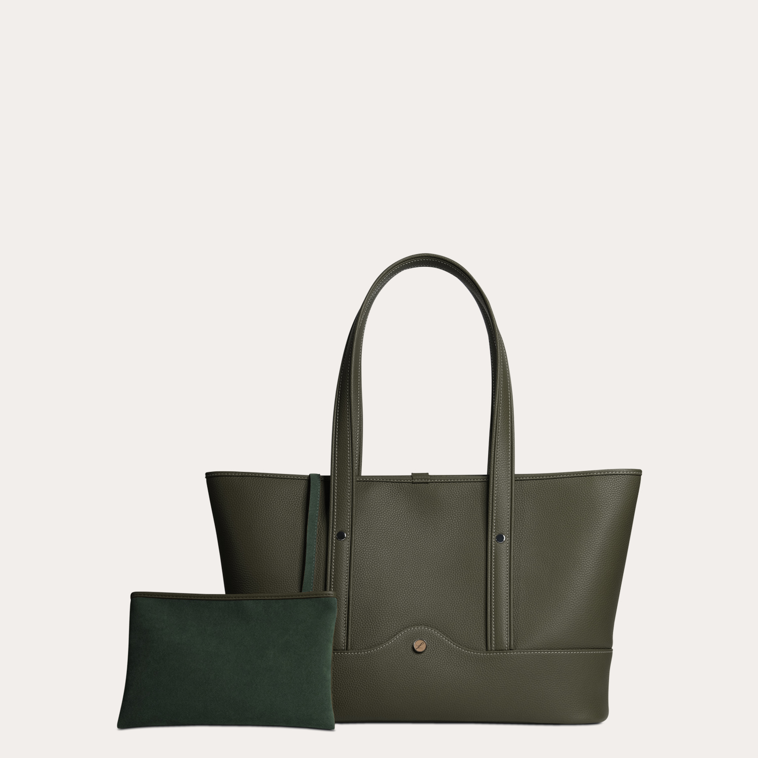 Внутри — объёмное отделение, два аккуратных внутренних кармана и изящный съёмный клатч. Клатч легко становится отдельным аксессуаром, но при желании — надёжным карманом для самых нужных вещей.